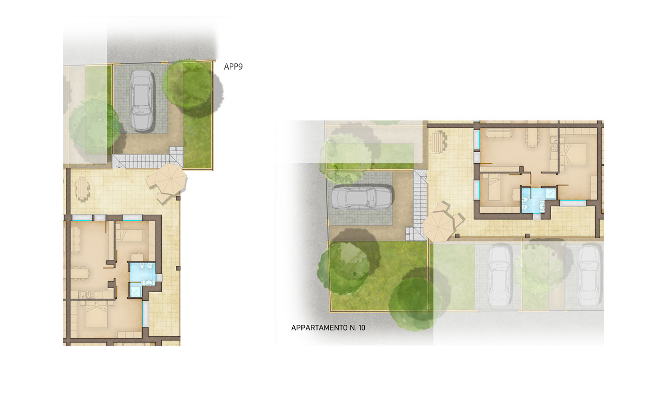 > piani terra con giardino